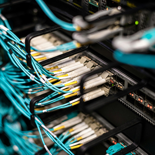 • High-density patch panels, cabinets, fibre uplinks, heavy-duty trunking